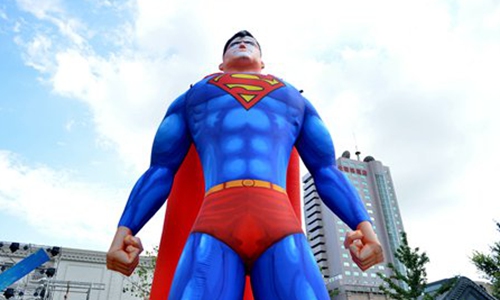 An giant inflatable Superman figure stands in front of a shopping mall in Shenyang, Northeast China's Liaoning Province on Saturday. Photo: CFP