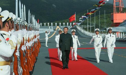 After the ceremony, Xi boarded the Shandong and reviewed the guards of honor. He also inspected the onboard equipment and asked about the work and life of carrier-based aircraft pilots.