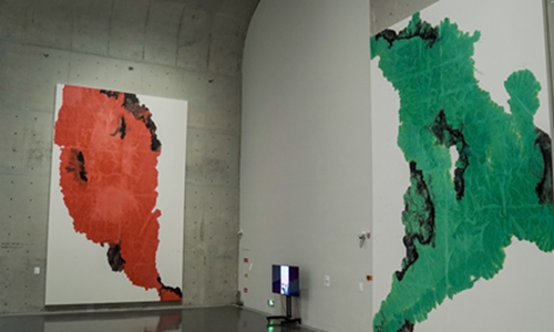 Li Geng and Shuangning's abstract Chinese ink paintings are on display at the art exhibition in Shanghai. The masterpieces explore a combination between traditional Chinese ink paintings and modern abstract art conception in the globalization context. Li Geng's abstract ink paintings have high reputation around the world. He has pursued placing Chinese traditional paintings in diverse cultures so Chinese and Western art can communicate. One of his works on display shows Western classical symphony with traditional Chinese ink paintings.