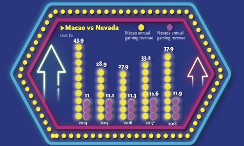 By comparison, the western US state of Nevada, home to Las Vegas, collected $12 billion in gaming revenues in the 12 months ended on October 31, showed figures from the Nevada Gaming Control Board - only about one-third of Macao's total.