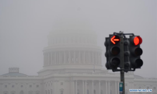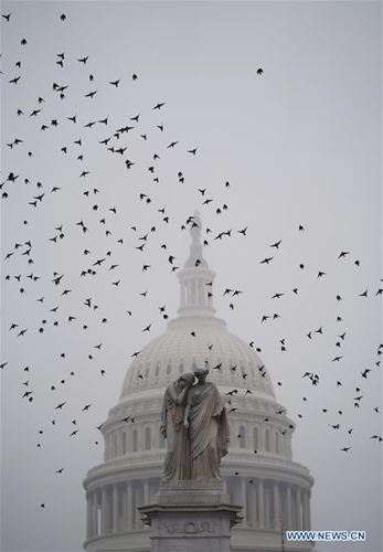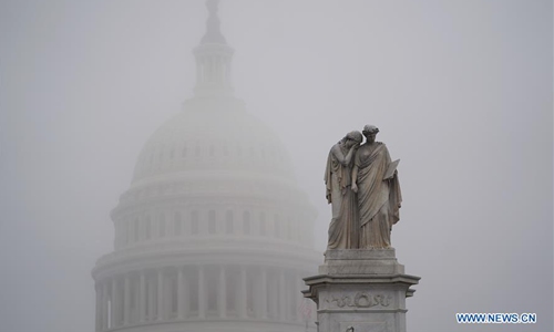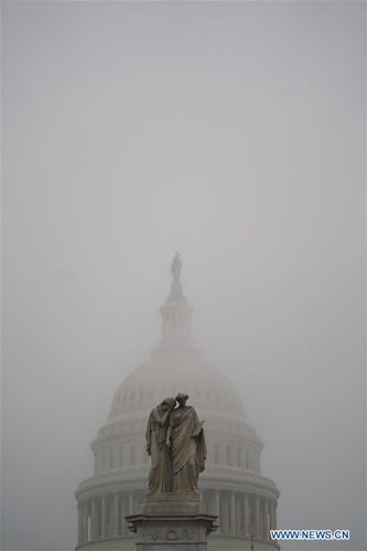 The Capitol Hill is shrouded in fog in Washington D.C., the United States, on Dec. 17, 2019. U.S. President Donald Trump on Tuesday sent a six-page letter to House Speaker Nancy Pelosi, slamming the House Democrats impeachment effort as an "illegal, partisan attempted coup" and an "unprecedented and unconstitutional abuse of power." (Xinhua/Liu Jie)