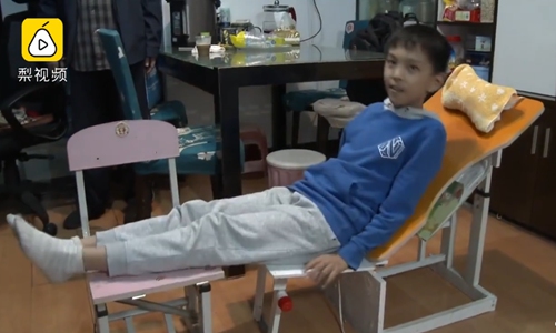 Two Chinese primary school students invent a desk that can easily transform into a recliner, making their noontime naps more comfy. Photo: Screenshot from Sina Weibo