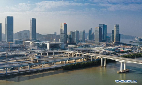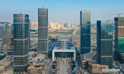 Photo taken on Dec. 10, 2019 shows the west square of the new Hengqin port in Zhuhai, south China's Guangdong Province. After three years of construction, the new Hengqin port is ready for visitors to travel between Zhuhai and the Lotus port in Macao. (Photo: Xinhua)