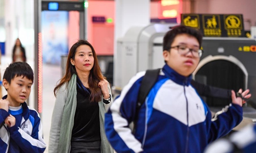 A Macao start-up businesswoman (2nd L) enters the Chinese mainland from the old Hengqin port in Zhuhai, south China's Guangdong Province, Dec. 11, 2019. After three years of construction, the new Hengqin port is ready for visitors to travel between Zhuhai and the Lotus port in Macao. (Photo: Xinhua)