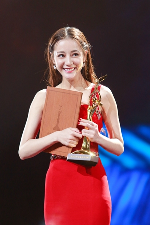 Dilraba receives awards on stage at the Golden Eagle Awards held in Changsha, Central China's Hunan Province on October 14, 2018. Photo: CNSphoto