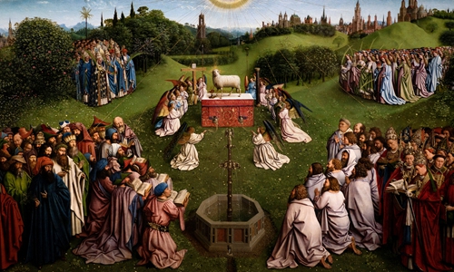 The central tableau of the 15th century Ghent Altarpiece - a panel known as