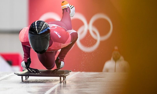 Olympic athlete from Russia Nikita Tregubov competes in the men's skeleton at 2018 PyeongChang Winter Olympic Games at Olympic Sliding Centre, PyeongChang, South Korea, February 15, 2018. Photo: Xinhua