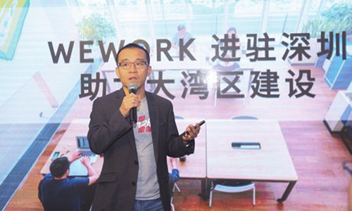 Alan Ai, general manager of WeWork in China discusses supercharging the Great Bay Area at the event in Shenzhen. Photo: Courtesy of WeWork
