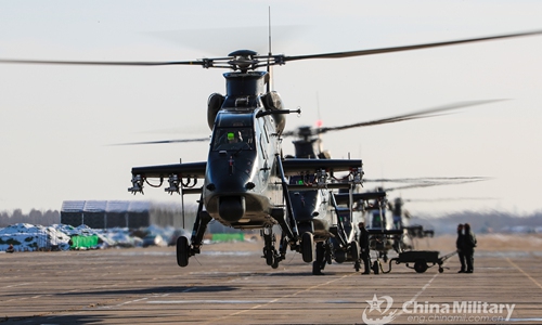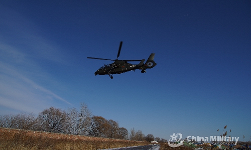A Z-19 attack helicopter attached to an army aviation brigade under the PLA 81st Group Army hovers at an ultra-low altitude during a flight training exercise on December 17, 2019, to hone the troops’ real combat capabilities. Photo:China Military