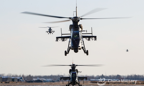A cluster of Z-19 attack helicopters attached to an army aviation brigade under the PLA 81st Group Army lift off successively during a flight training exercise on December 17, 2019, to hone the troops’ real combat capabilities. Photo:China Military