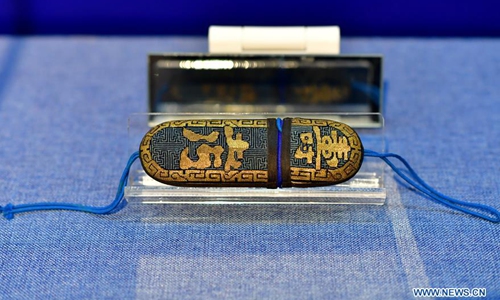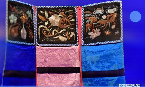 Photo taken on Dec. 19, 2019 shows a wallet during an exhibition about Jin embroidery, a traditional craft in Shanxi Province, at the Taiyuan Art Museum in Taiyuan, north China's Shanxi Province. Photo:Xinhua