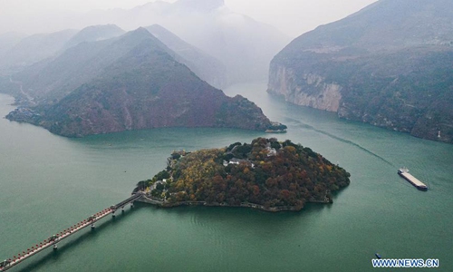 Aerial photo taken on Dec. 21, 2019 shows the view of Baidicheng and its peripheral areas in southwest China's Chongqing Municipality. Baidicheng, a popular tourist attraction sitting on the top of Baidi Mountain in Fengjie County, Chongqing, marks the front end of Qutang Gorge, one of the renowned Three Gorges of Yangtze River. Photo:Xinhua