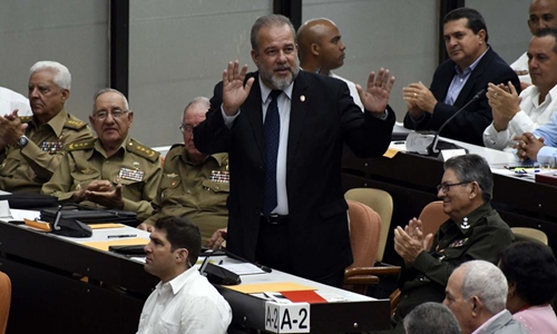 Manuel Marrero, the new Cuban prime minister (center), attends a session of the ninth National Assembly of People,s Power at the Convention Palace in Havana, the capital of Cuba, on Dec. 21, 2019. (Xinhua/Joaquin Hernandez)