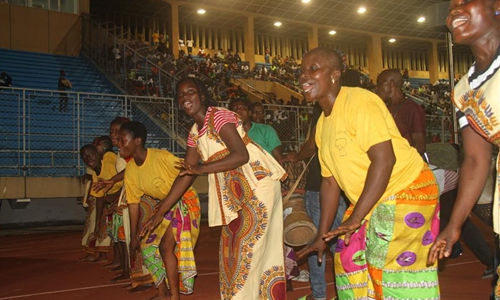Local dancers perform at the opening of Tsingtao Beer Festival in Monrovia, Liberia, Dec. 21, 2019. The Tsingtao Beer Festival in Liberia kicked off on Saturday with activities of a 5-km mini-marathon and a friendly football match held in the capital city Monrovia. The festival will be held in 15 countries between December 2019 and October 2020. (Xinhua/Guo Jun)