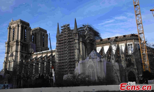For the first time in more than 200 years, there will be no Christmas midnight mass at Notre Dame cathedral this year. Repair work continues after the April fire that destroyed its roof and spire. The Mass will be celebrated in a temporary home a mile away. Photo:China News Service