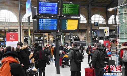 Holiday travelers across France scrambled for alternatives as an 18-day-old transport strike over pension reform saw train services slashed yet again, Dec. 22, 2019. (Photo/China News Service)