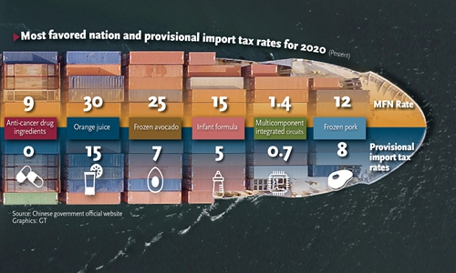 More than 850 items - from frozen pork to orange juice and high-technology products - will be subject to provisional import tariff rates that are lower than most-favored nation (MFN) rates, according to a statement on the website of the Ministry of Finance.