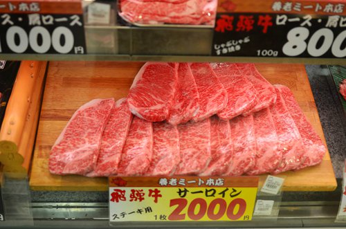 Several cuts of Japanese beef shown at a market. Photo: IC