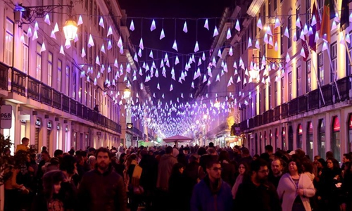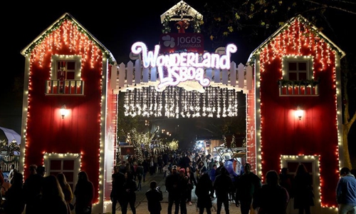 People attend a Christmas market in Lisbon, Portugal, Dec. 22, 2019. Photo:Xinhua