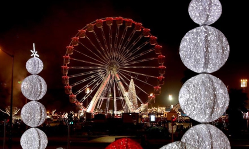 A ferry wheel is seen at a Christmas market in Lisbon, Portugal, Dec. 22, 2019. Photo:Xinhua