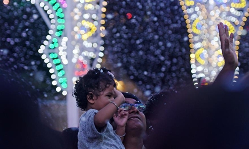 People view the Christmas light installations at the "Christmas Wonderland" held in Singapore's Gardens by the Bay on Dec. 23, 2019. Photo:Xinhua