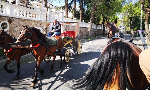 Photo taken on April 21, 2019 shows a horse-drawn carriage on Princes' Islands in Istanbul, Turkey. The mayor of Istanbul announced on Dec. 23 that horse-drawn carriages on the city's islands would be permanently banned following a recent outbreak of glanders. Photo:Xinhua