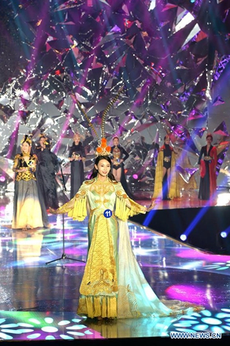 A contestant from China presents her dress during an international beauty contest in Manzhouli, north China's Inner Mongolia Autonomous Region, Dec. 23, 2019. The final of the 16th China-Russia-Mongolia International Beauty Pageant was held here on Monday.Photo:Xinhua