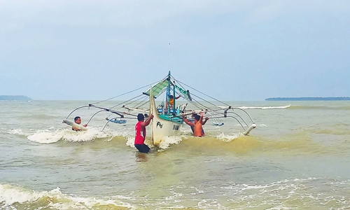 Residents help carry a wooden fishing boat into a secured area along the coast in Borongan town, Eastern Samar province, central Philippines, on Monday, as they prepare for Typhoon Kammuri, which churned closer, forcing evacuations and threatening plans for the Southeast Asian Games events near the capital, Manila. Photo: VCG