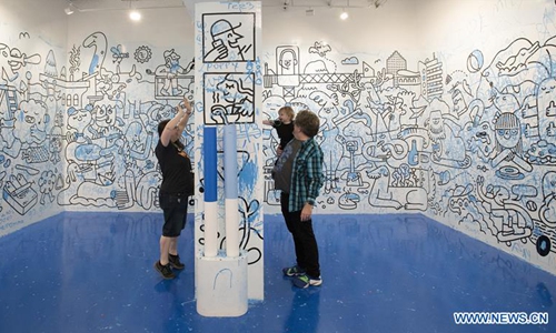 A woman plays at the Thought Bubble room with her son at the Color Factory in Houston, Texas, the United States, on Dec. 23, 2019. Color Factory is an interactive art exhibition started in San Francisco in 2017, then expanded to New York in 2018. The more than 1,800 square-meter Houston location opened in late October. (Photo by Li Yijin/Xinhua)