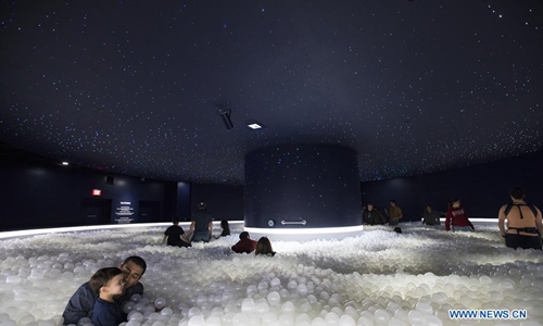 People play in the ball pit collaborated with NASA and inspired by the Moon landing and the space at the Color Factory in Houston, Texas, the United States, on Dec. 23, 2019. Color Factory is an interactive art exhibition started in San Francisco in 2017, then expanded to New York in 2018. The more than 1,800 square-meter Houston location opened in late October. (Photo by Li Yijin/Xinhua)