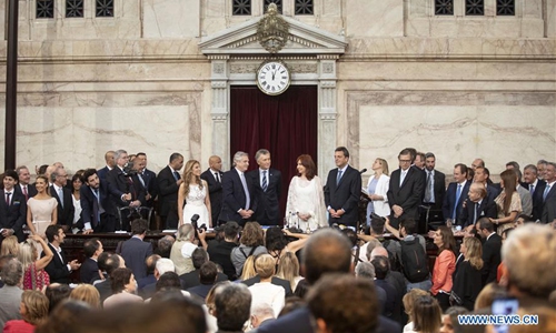 Argentine President Alberto Fernandez and Vice President Cristina Fernandez attend a ceremony in Buenos Aires, Argentina, Dec. 10, 2019. Alberto Fernandez of the Everyone's Front coalition was sworn in as president of Argentina on Tuesday at a ceremony in the National Congress. (Xinhua/Martin Zabala)