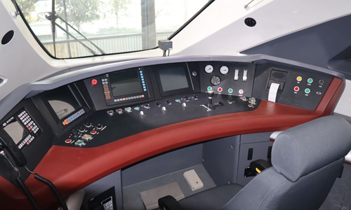 CRRC Zhuzhou Locomotive displays the driving cab of a CJ6 train at the 2019 China International Rail Transit and Equipment Manufacturing Industry Expo in Changsha, central China's Hunan Province, Oct. 18, 2019.(Xinhua/Xue Chen)