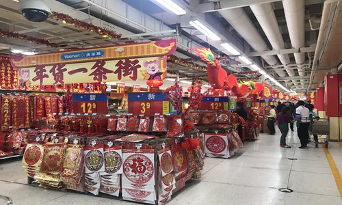 A corner of Walmart supermarket in Beijing over the weekend Photo: Li Xuanmin/GT