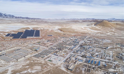 Aerial photo taken on Dec. 24, 2019 shows a view of Tsonyi County, Nagqu City, southwest China's Tibet Autonomous Region. The world's highest county, Tsonyi, Nagqu City, southwest China's Tibet Autonomous Region, was connected to China's state grid Tuesday, enabling a stable power supply for more than 7,000 local residents. In the county seat with an altitude of more than 5,000 meters above sea level, power workers braved a coldness of minus 20 degrees Celsius to start the equipment on Tuesday. Photo:Xinhua