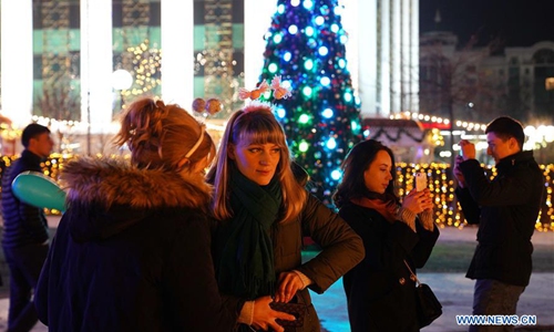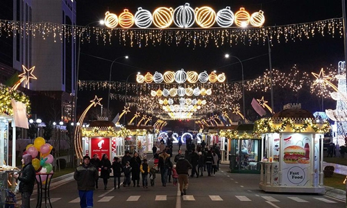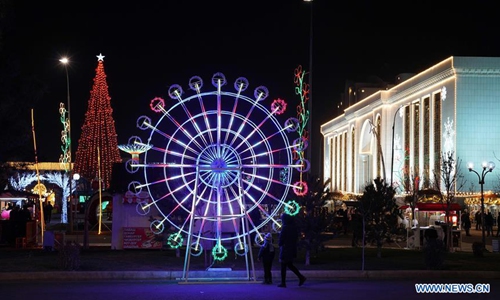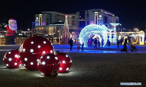 Downtown area is decorated with festive lights in Tashkent, capital of Uzbekistan, on Dec. 24, 2019. Festive lights illuminated the main streets of Tashkent, heralding the start of Christmas and New Year celebrations. (Photo by Zafar Khalilov/Xinhua)
