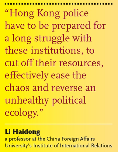 "Hong Kong police have to be prepared for a long struggle with these institutions, to cut off their resources, effectively ease the chaos and reverse an unhealthy political ecology", Li added.
