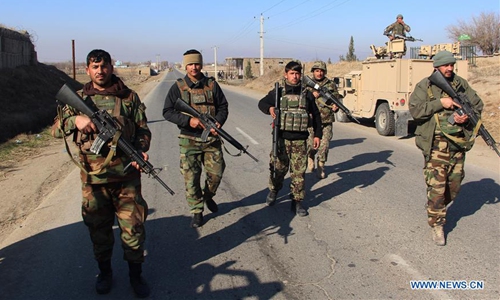 Afghan army soldiers take part in a military operation against Taliban militants in Kunduz Province, Afghanistan, Dec. 25, 2019. Afghan government forces stormed a Taliban hideout in Khan Abad district of the northern Kunduz province on Thursday, killing five insurgents and wounding three others, a local police commander Sarfaraz Khan said. (Photo by Ajmal Kakar/Xinhua)