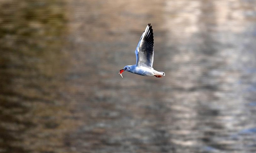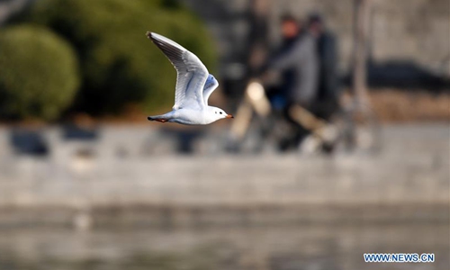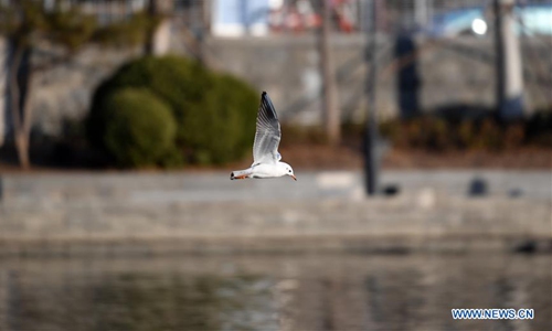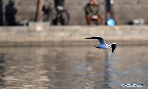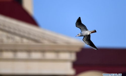 A black-headed gull flies over Haihe River in north China's Tianjin, Dec. 26, 2019. (Xinhua/Li Ran)