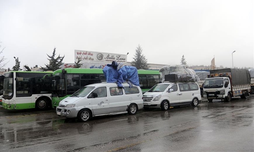 Vehicles transporting Syrian refugees arrive at the Jdaidet Yabous border crossing, west of Damascus, Syria, on Dec. 26, 2019. Around 1,400 Syrian refugees returned to their homeland from different areas in Lebanon on Thursday, Lebanese media reported. Photo: Xinhua