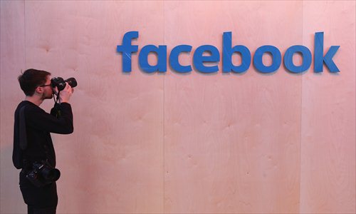 A photographer snaps a photo of the Facebook logo. Photo: CFP