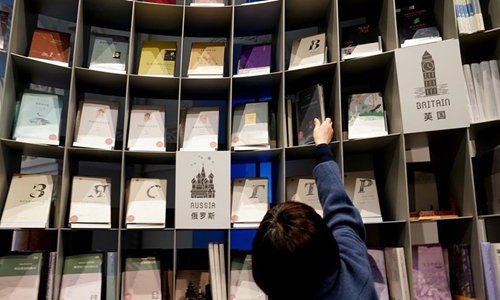 Readers select collections of poems in a poetry themed bookstore in Shanghai, east China, on Dec. 28, 2019. The bookstore called Si'nan Books-Poetry Bookstore started business on Saturday. Photo:Xinhua