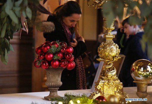 Colorful decorations are seen at the Chantilly Castle, north of Paris, France, Dec. 29, 2019. Festive decorations including majestic Christmas trees and a 12-metre long festive table adorned with party decorations are seen at the Chantilly Castle in celebration of Christmas and the upcoming New Year. The decorations will be presented until Jan. 5, 2020. (Xinhua/Gao Jing)
