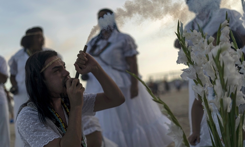 Worshippers make an end-of-year offering to Iemanja, the Goddess of the Sea of the Afro-Brazilian religion Umbanda, at Copacabana Beach in Rio de Janeiro, Brazil, on Sunday. Photo: AFP