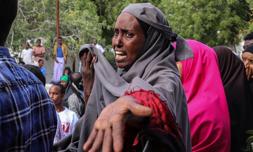 A Somali woman reacts as victims from a car bombing attack are brought to the Madina Hospital in Mogadishu, Somalia on Saturday. Photo: AFP