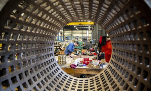 An employee works in Birtley Industrial Equipment, a Chinese-owned manufacturing firm based in Lexington, the U.S. state of Kentucky, Nov. 26, 2019. (Xinhua/Wang Ying)
