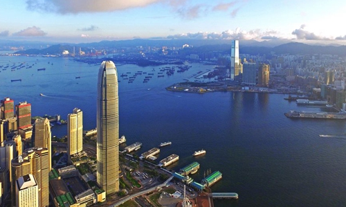 Aerial photo taken on April 30, 2018 shows the Victoria Harbor in south China's Hong Kong. Photo:Xinhua