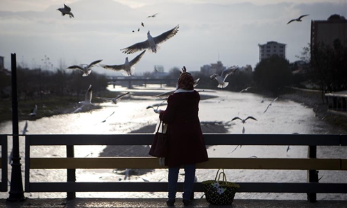 A woman feeds migratory birds in Tonekabon city, northern Iran, Dec. 29, 2019. (Photo by Ahmad Halabisaz/Xinhua)