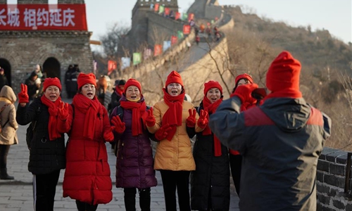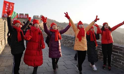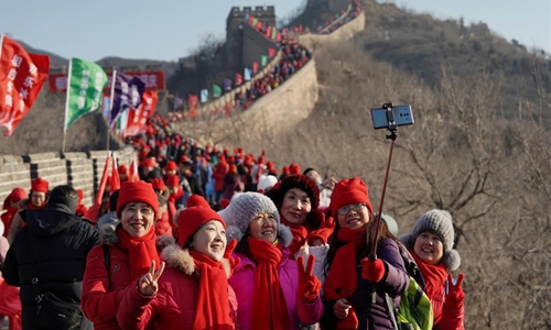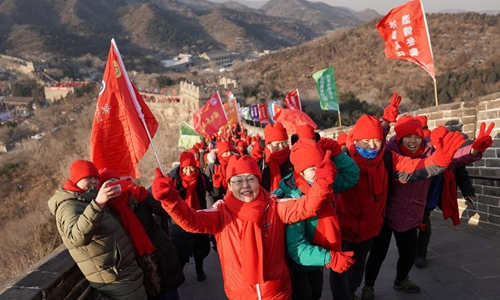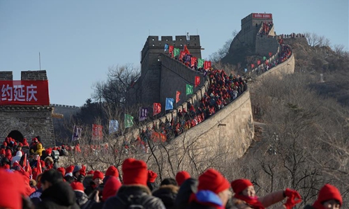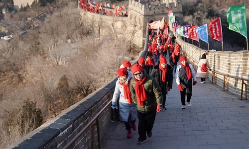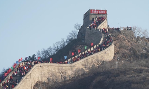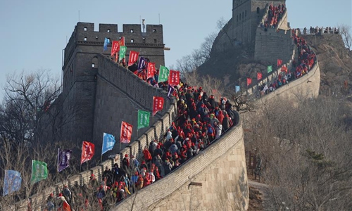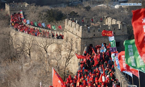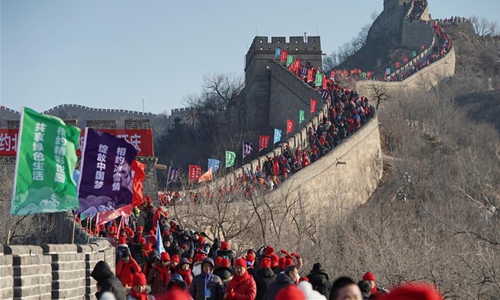 People visit the Great Wall to celebrate the New Year in Beijing, capital of China, Jan. 1, 2020. (Xinhua/Ju Huanzong)
