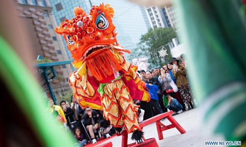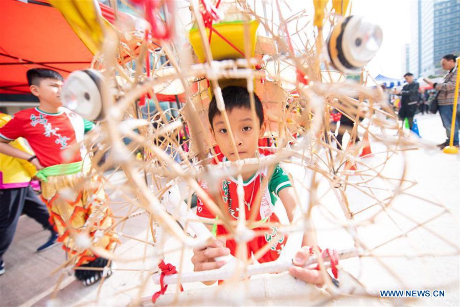 A young actor shows how to perform lion dance during the Macao International Dragon and Lion Dance Day event at Praca da Amizade (Friendship Square) in Macao, south China, Jan. 1, 2020. Photo:Xinhua