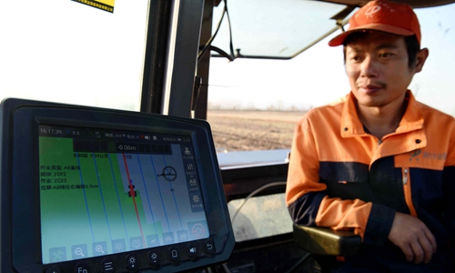 A self-driving tractor utilizes a BeiDou Navigation Satellite System application in Tongling, East China's Anhui Province. Photo: cnsphoto